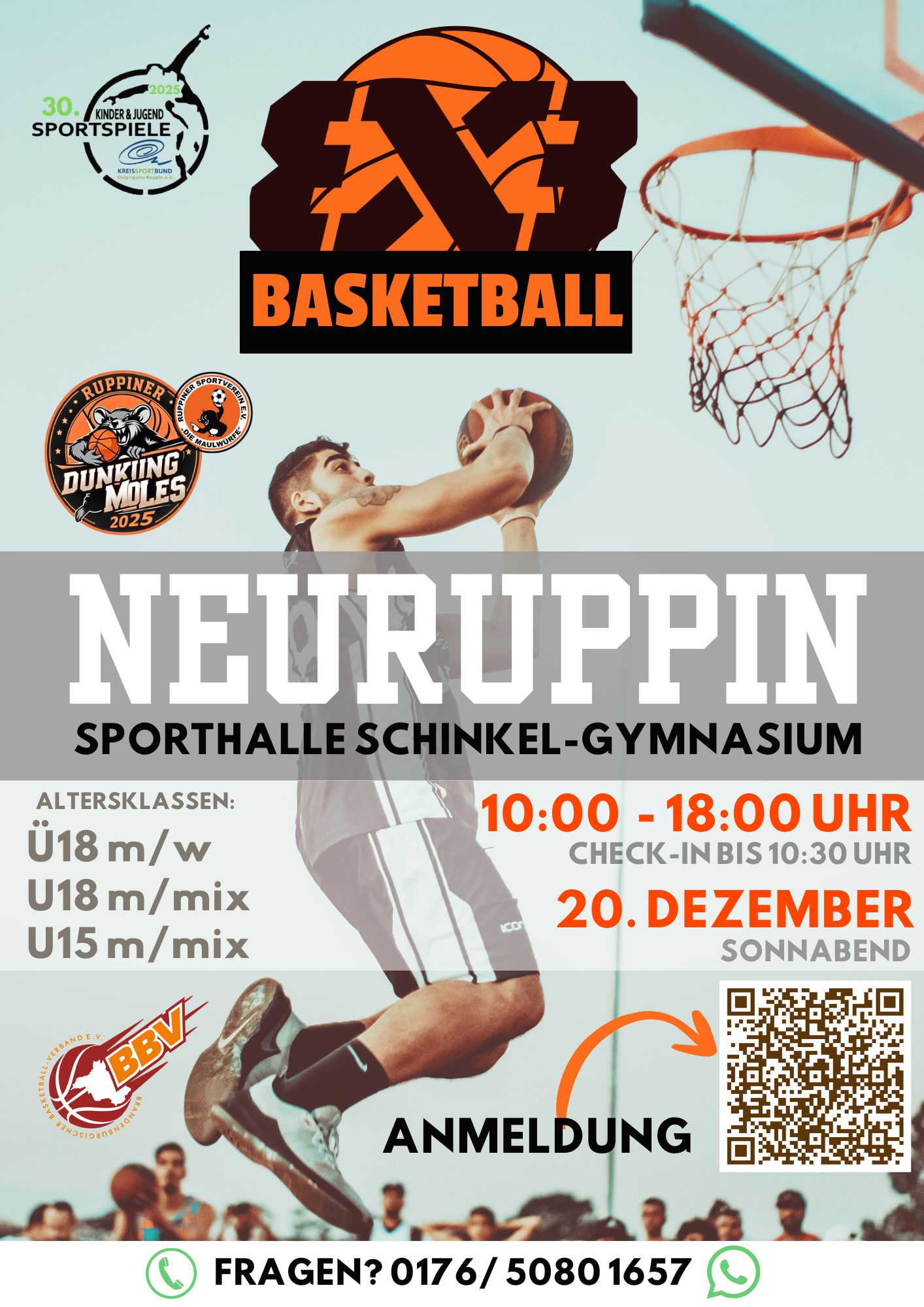 Am Samstag, den 20.12.2025, findet ein 3×3 Turnier in Kooperation mit den Ruppiner Maulwürfen in Neuruppin statt. Weitere Informationen sind der Grafik weiter unten zu entnehmen. Für das Turnier fallen keine Anmeldegebühren an!
