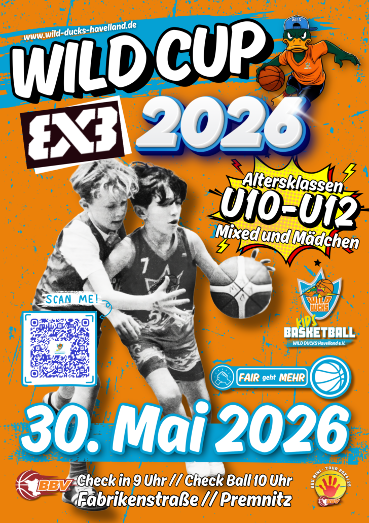 am Samstag, den 30. Mai 2026, findet in Premnitz ein 3×3 Turnier in den Altersklassen U10 mix/Mädchen & U12 mix/Mädchen statt.